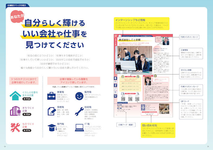 京都・滋賀の大学や専門学校で配布していますので、学生の皆様は手にとってご覧いただき、就職活動心強いパートナーとしてぜひご活用ください。